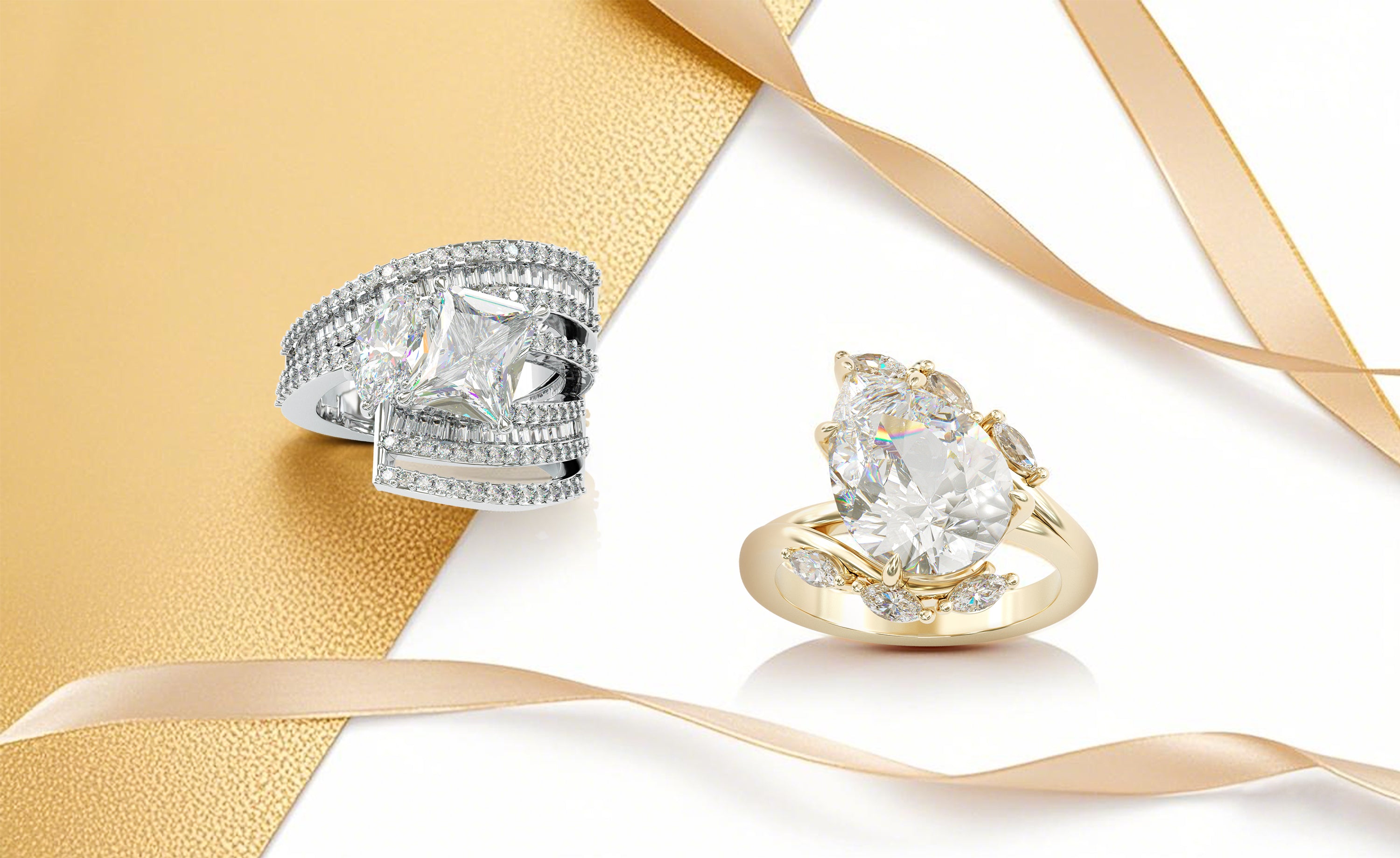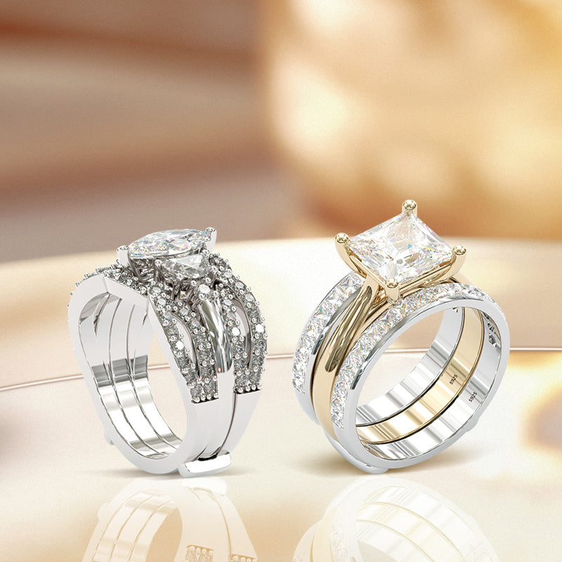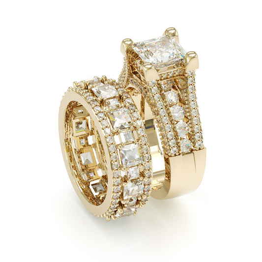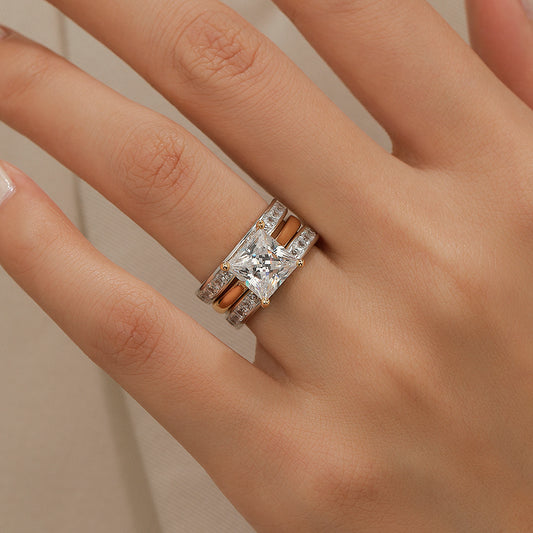 Jzora handmade princess cut Moissanite two tone anniversary ring wedding ring bridal set