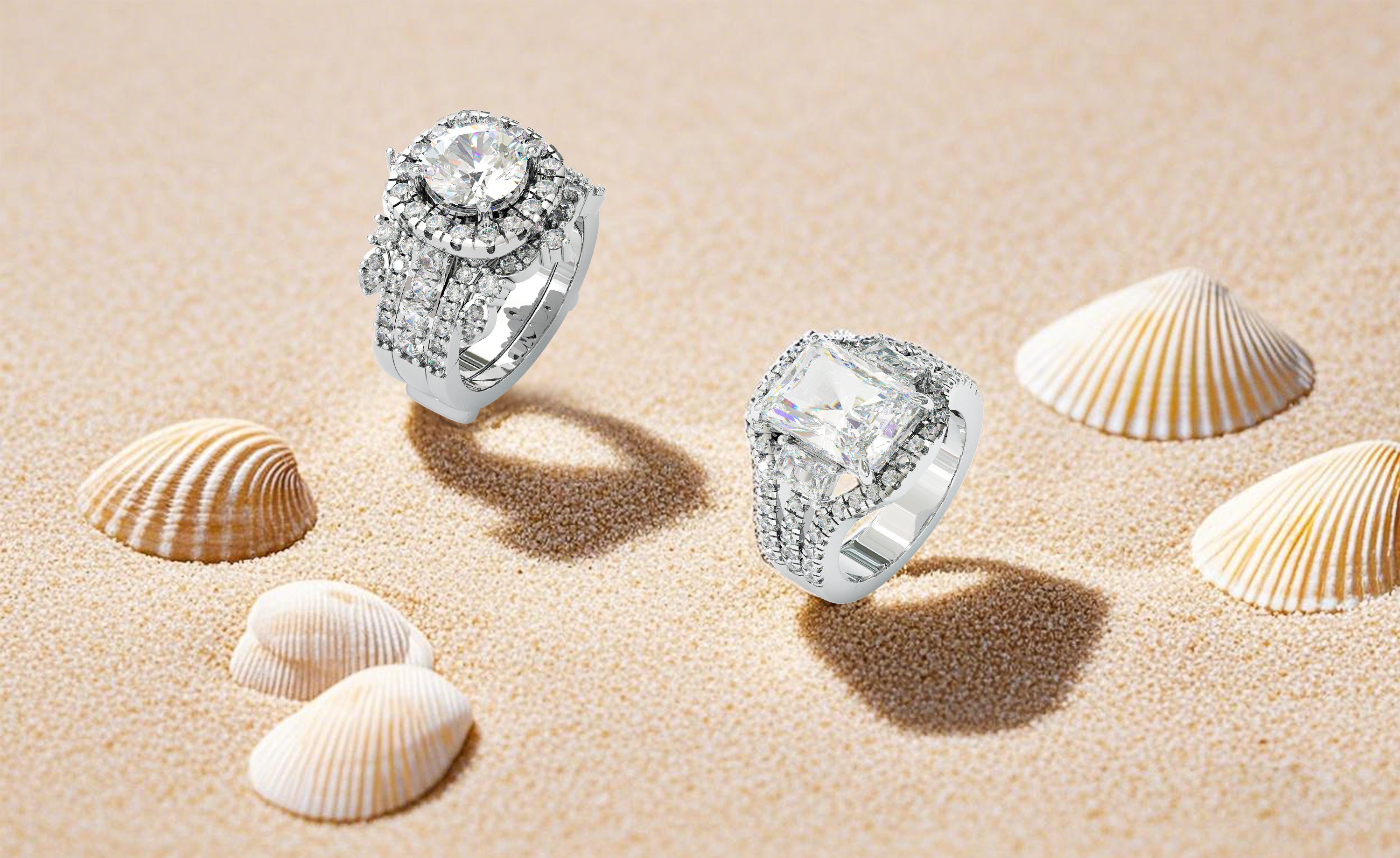 Jzora handmade 2ct round cut halo sterling silver ring set
