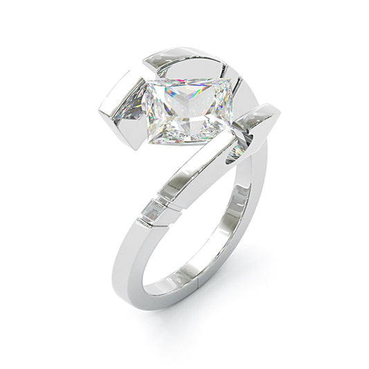 Jzora handmade 3ct princess cut moissanite unique sterling silver ring