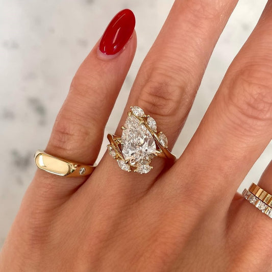 Jzora handmade 4ct gold pear cut classic sterling silver ring