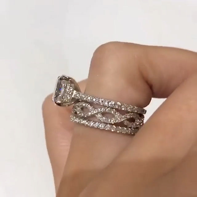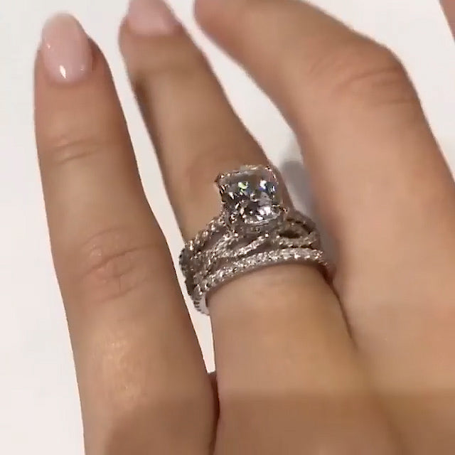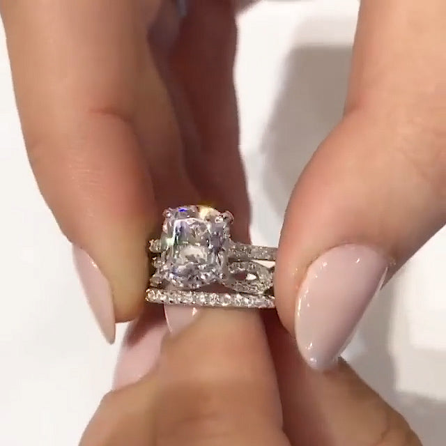 Jzora handmade cushion cut 3 pcs vintage sterling silver wedding ring bridal set