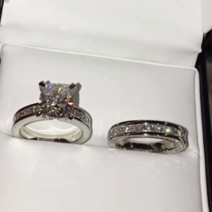 Jzora handmade cushion cut vintage diamond sterling silver wedding set