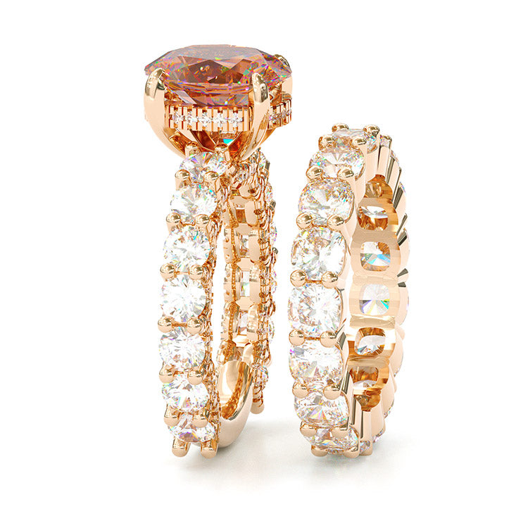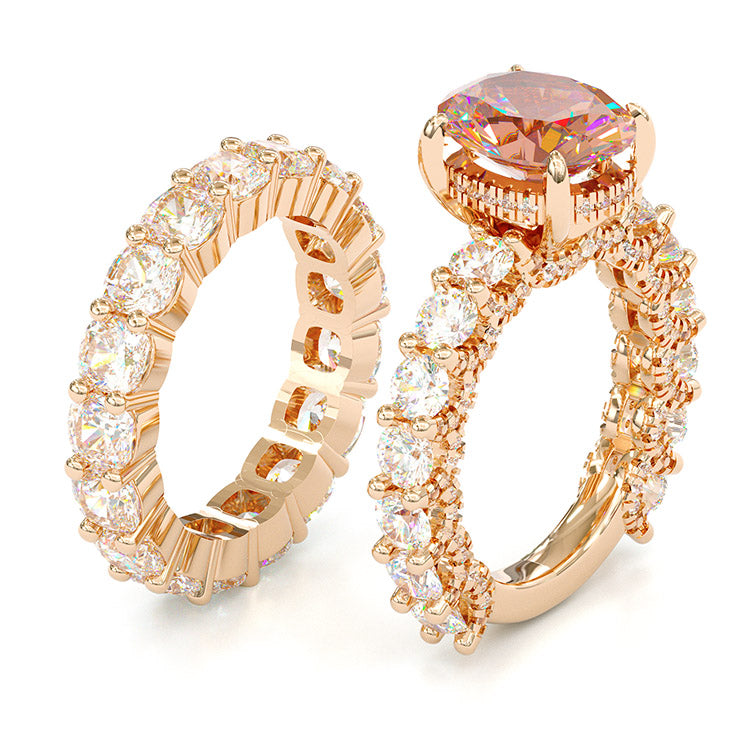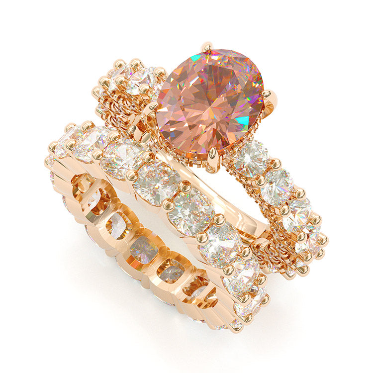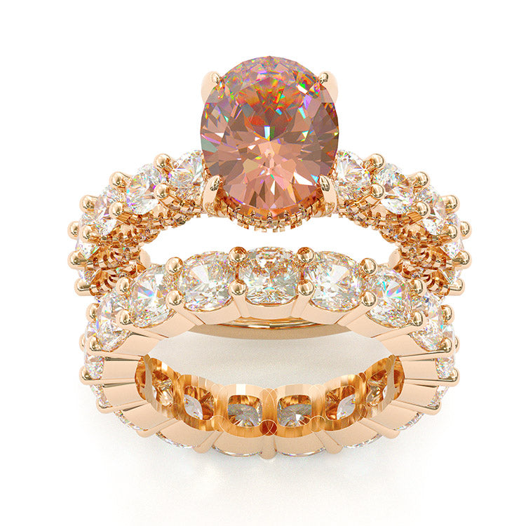 Jzora handmade oval cut vintage Champagne sterling silver wedding ring bridal set