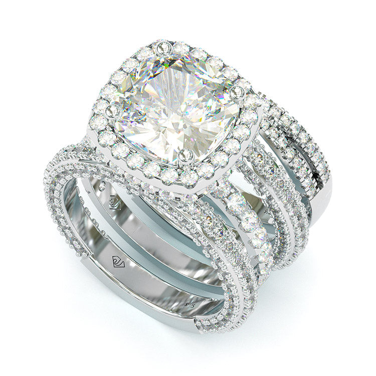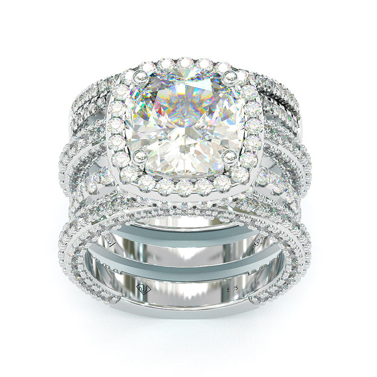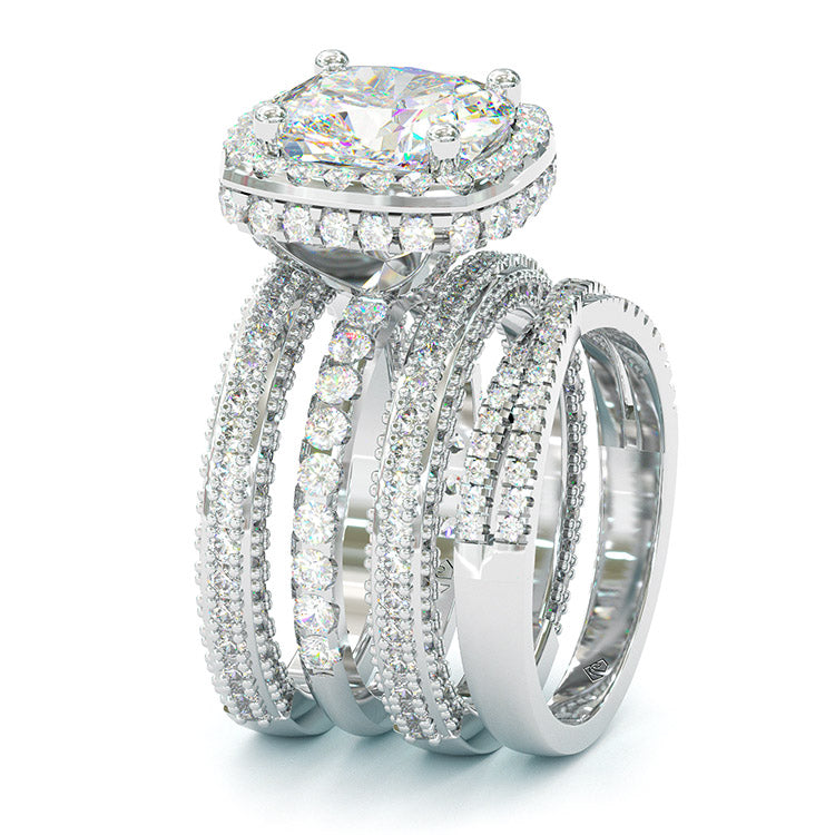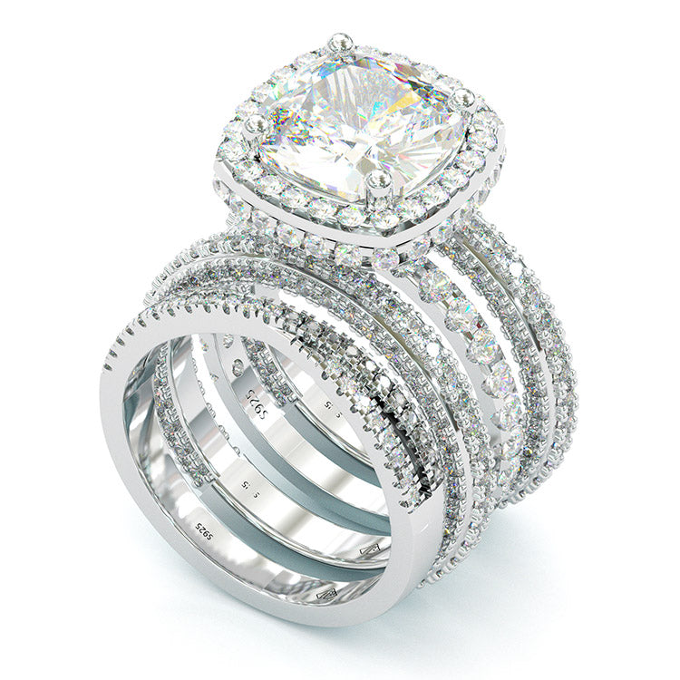 Jzora handmade cushion cut 4 pcs halo sterling silver wedding ring bridal set