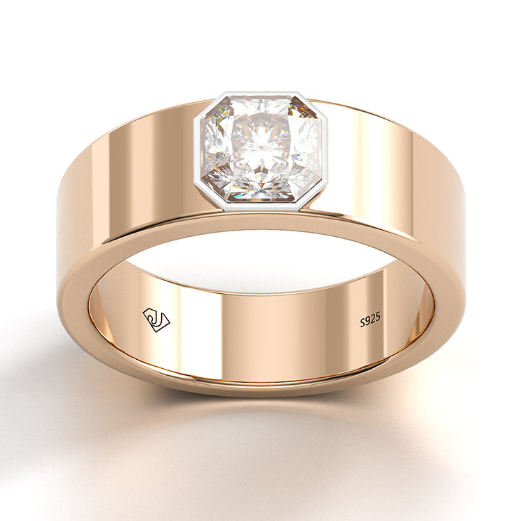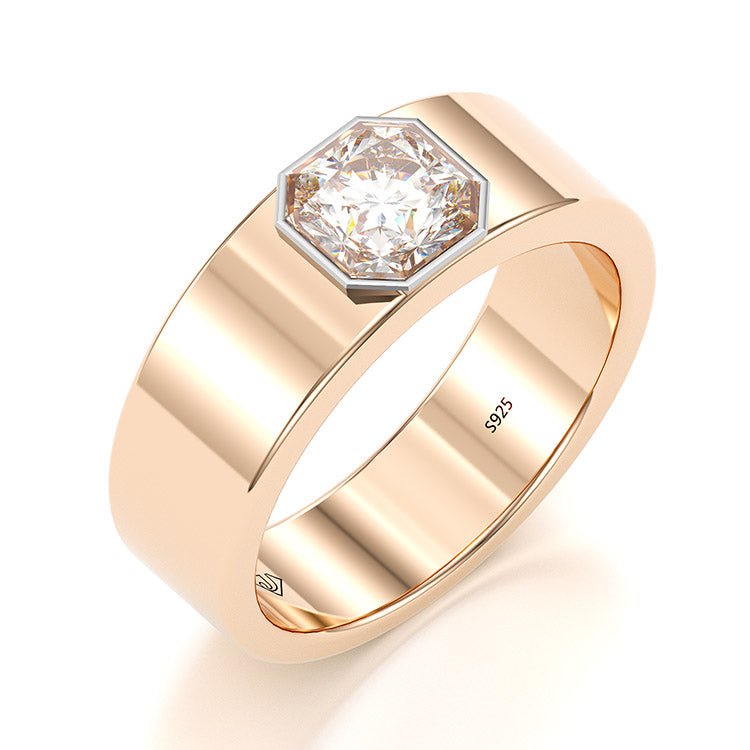Jzora handmade asscher cut 1.75 ct diamond classic sterling silver men's band