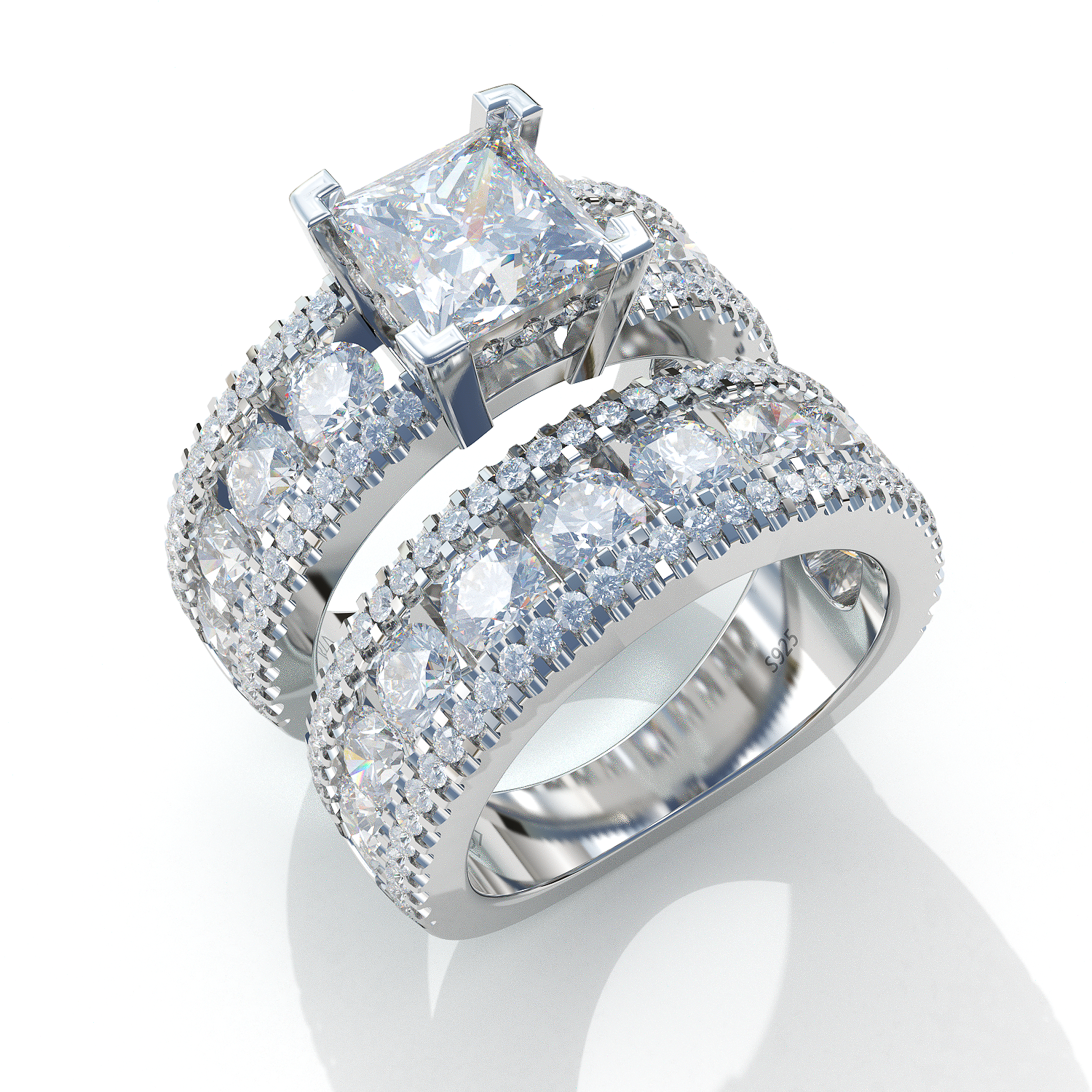 Jzora princess cut created diamond sterling silver vintage bridal set