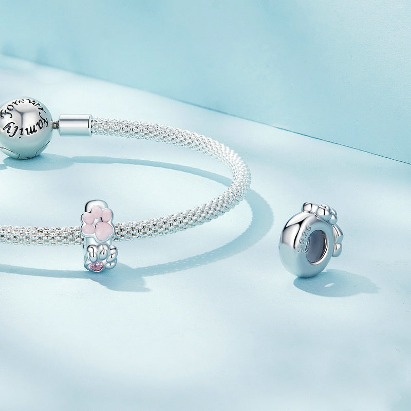 Jzora Animal Pink Cat Paw Sterling Silver Charm