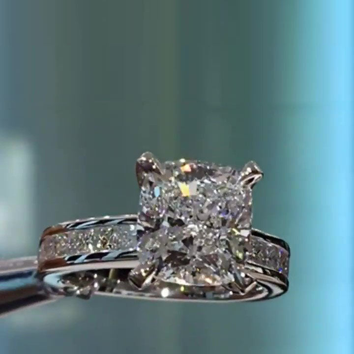 Jzora Classic Created Diamond Cushion cut Sterling Silver Engagement Ring