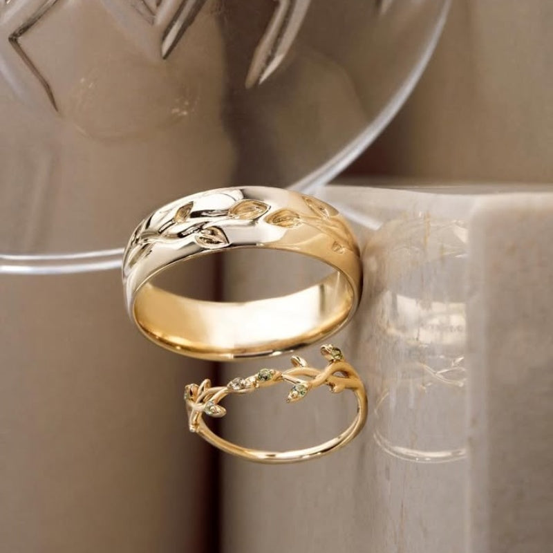 Jzora classic vine and gemstone wedding ring anniversary couple rings