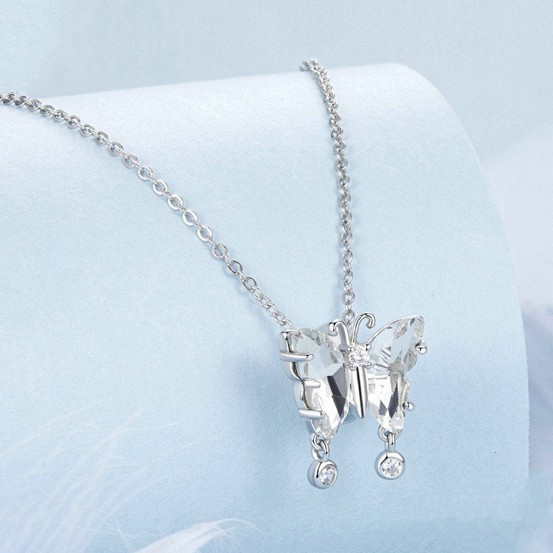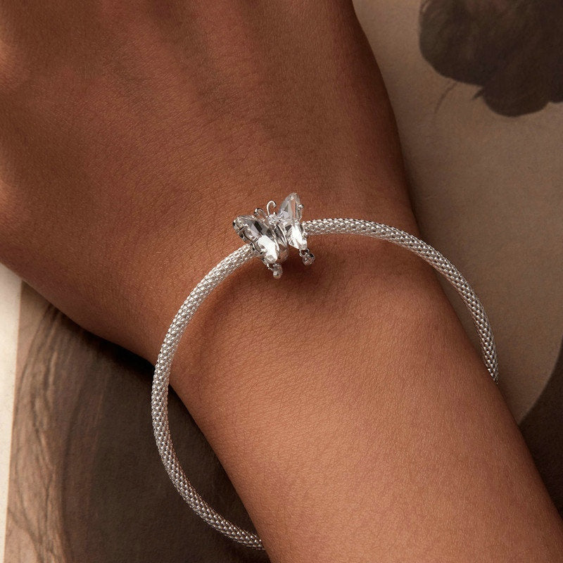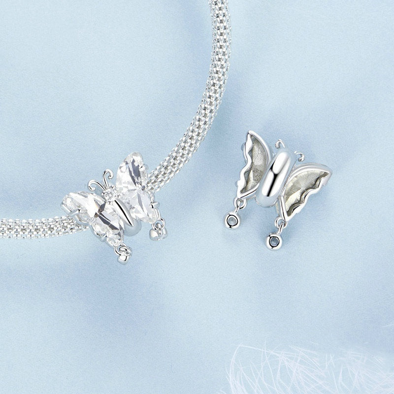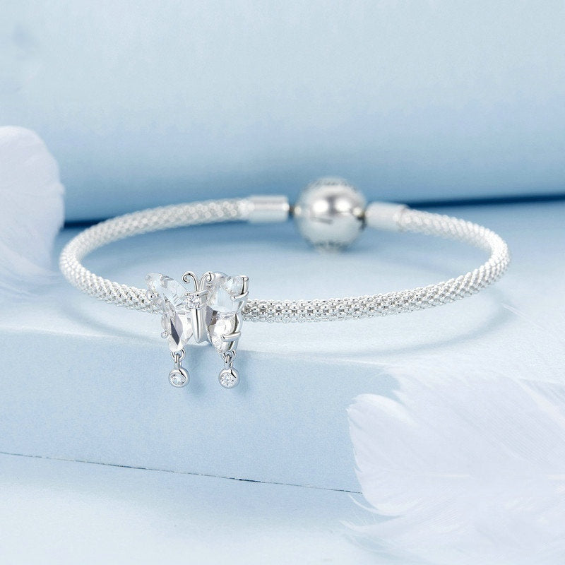 Jzora Crystal Sparkling Butterfly Sterling Silver Charm