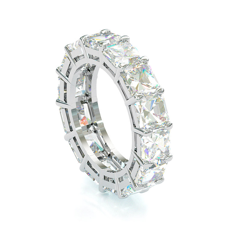 Jzora Cushion Cut Classic Diamond Sterling Silver Women's Band Wedding Ring