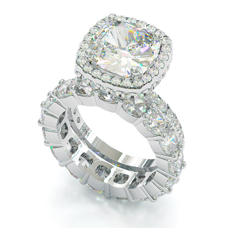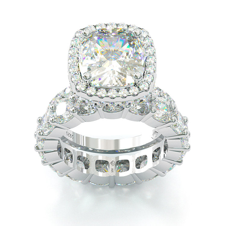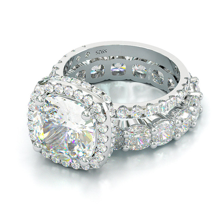 Jzora cushion cut created diamond sterling silver bridal set wedding ring