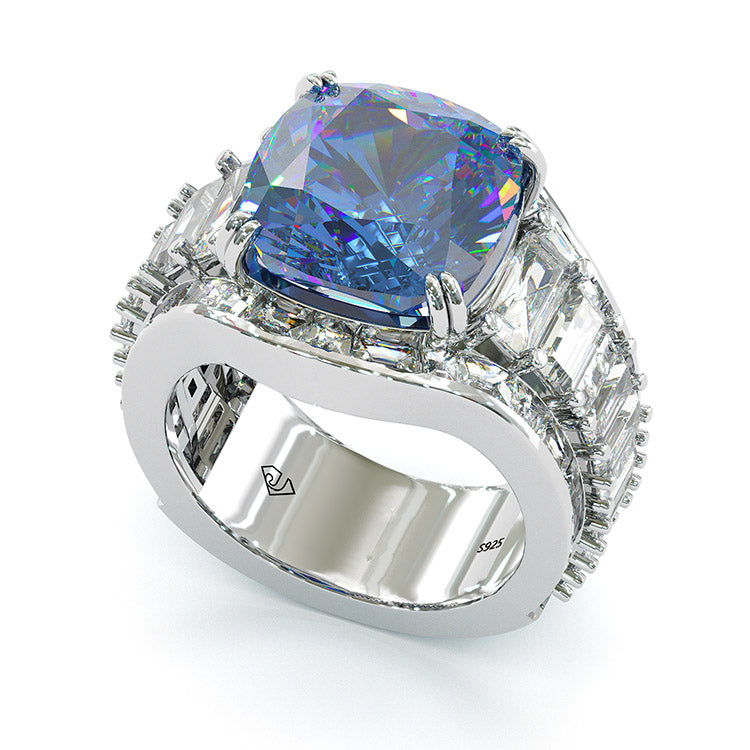 Jzora cushion cut sapphire diamond sterling silver vintage engagement ring