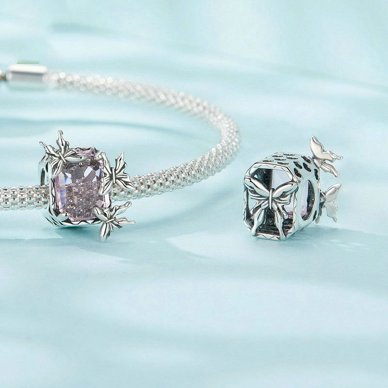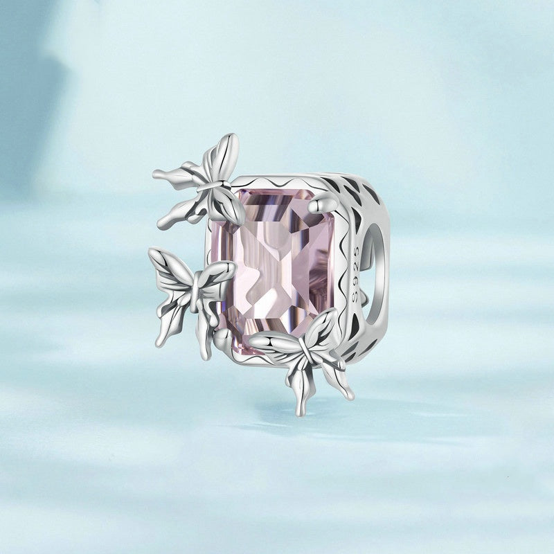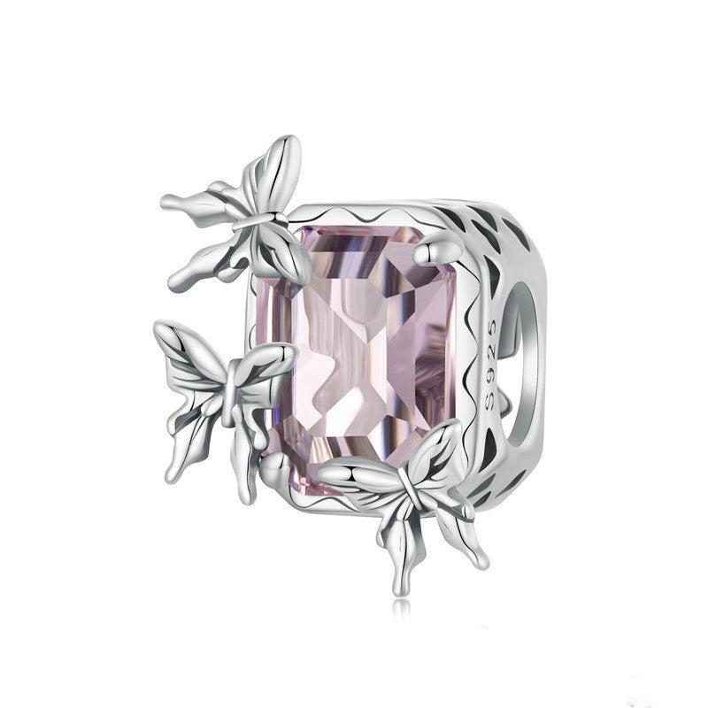 Jzora Delicate Sweet Dreamy Pink Butterfly Sterling Silver Charm