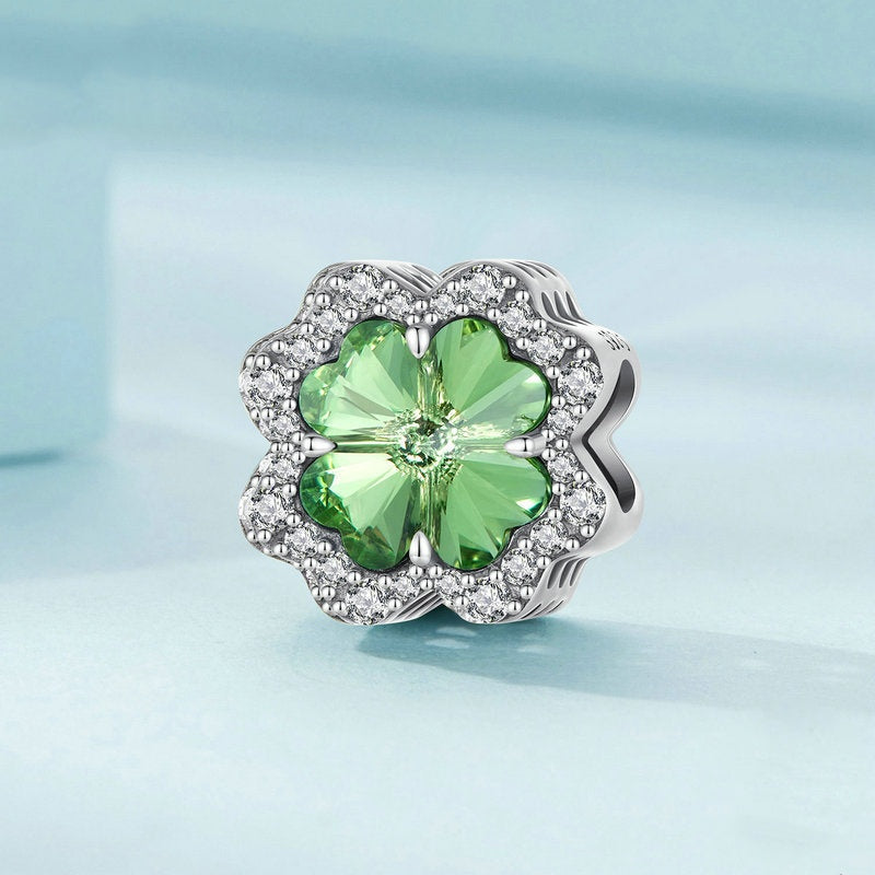 Jzora Fashion Green Lucky Four-leaf Clover Sterling Silver Charm
