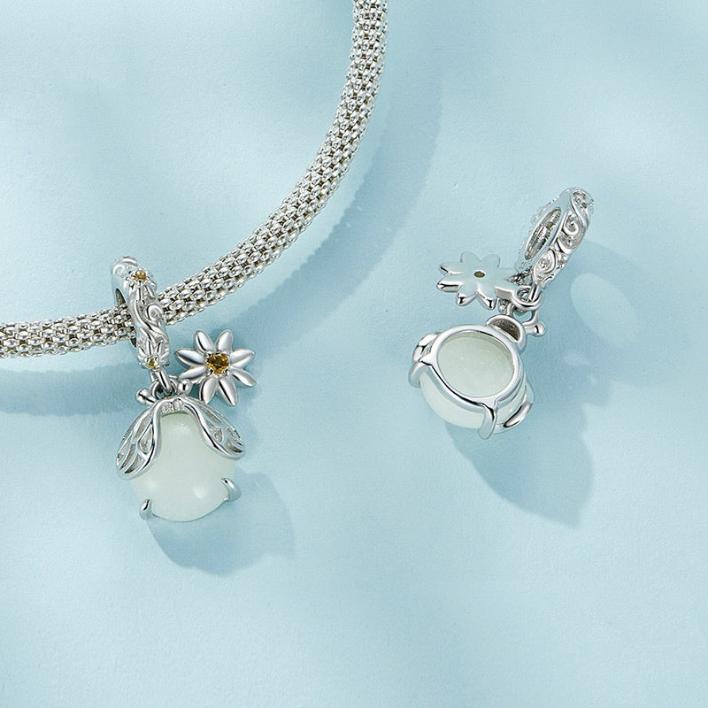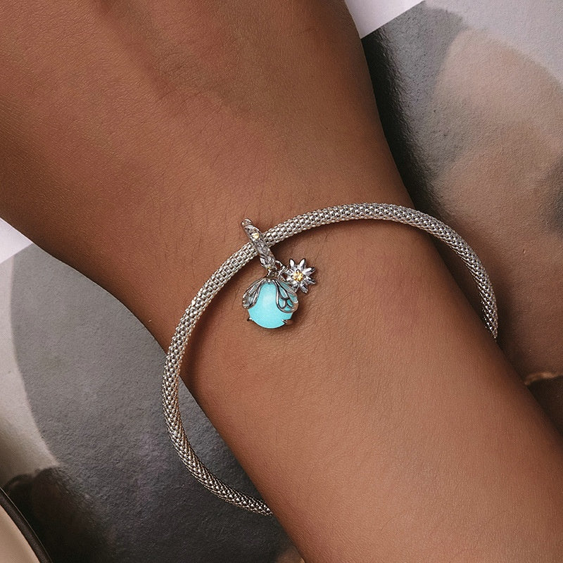 Jzora Fluorescent Stone Firefly Sterling Silver Charm