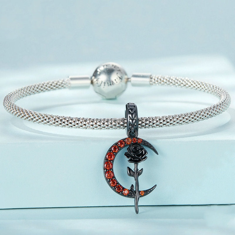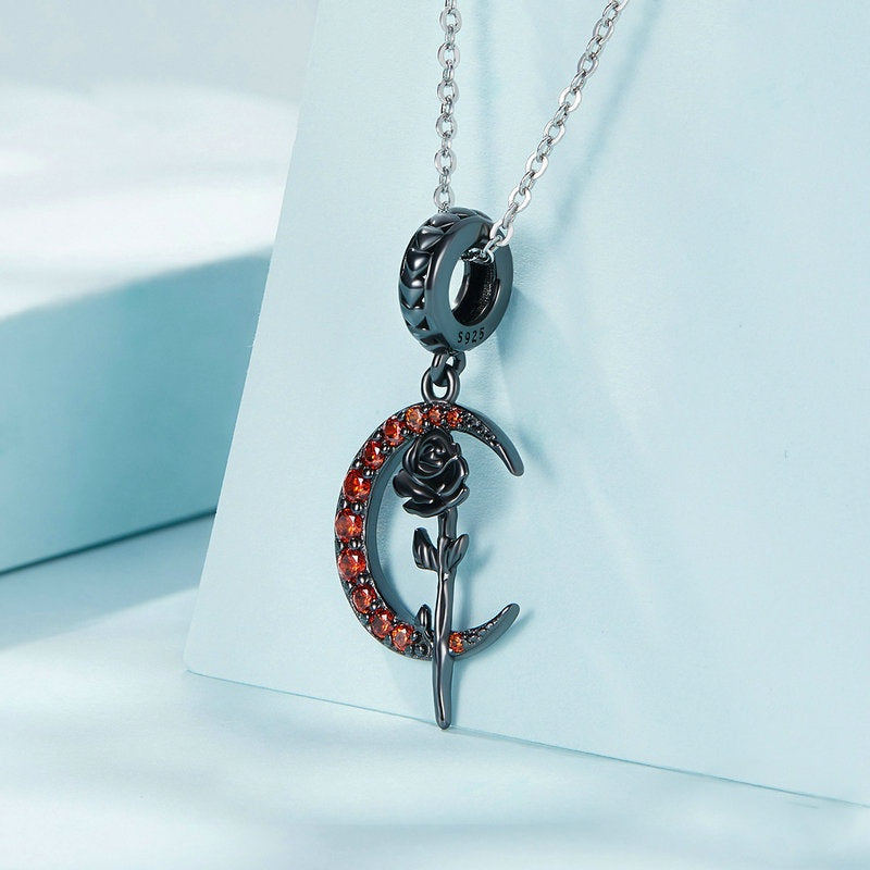 Jzora Halloween Black Moon Rose Sterling Silver Charm