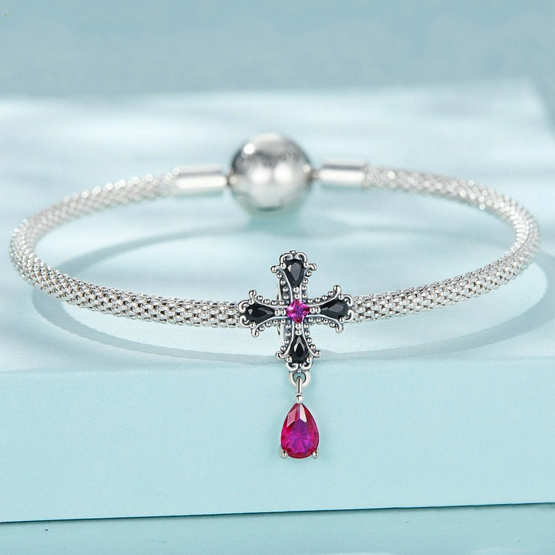 Jzora Halloween Cross Pear Cut Sterling Silver Charm