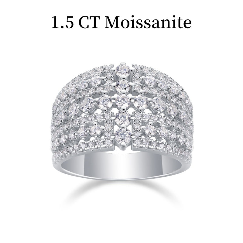 Jzora handmade 1.5ct round cut moissanite sterling silver women's band