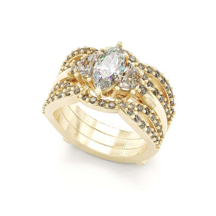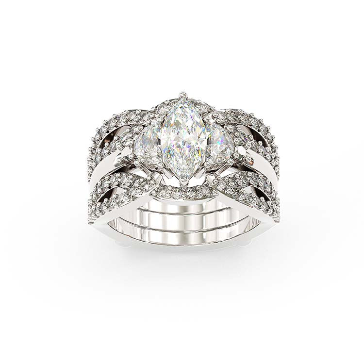 Jzora handmade 1 ct gold marquise cut 2 pieces vintage sterling silver bridal ring set