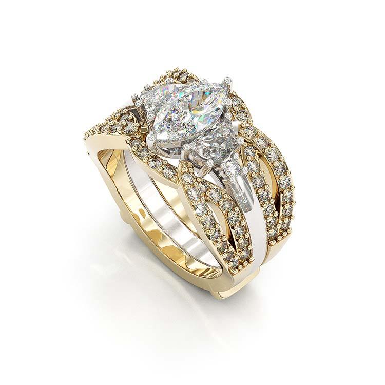 Jzora handmade 1 ct marquise cut 2 pcs sterling silver bridal ring set