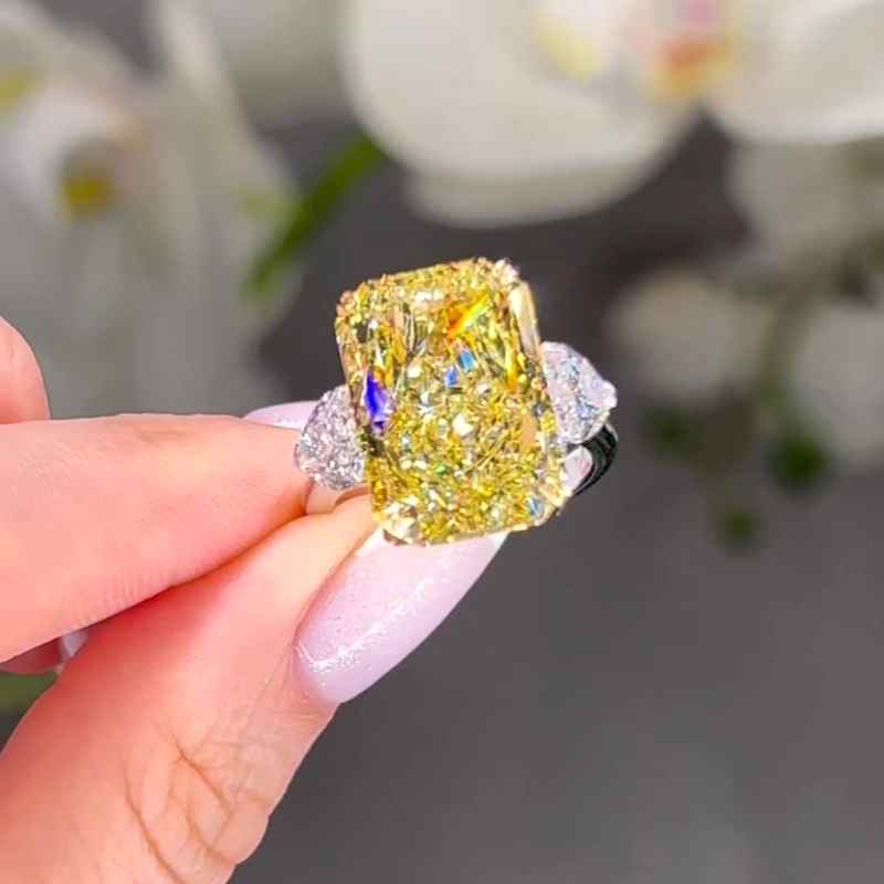 Jzora handmade 13 ct yellow radiant cut vintage sterling silver engagement ring