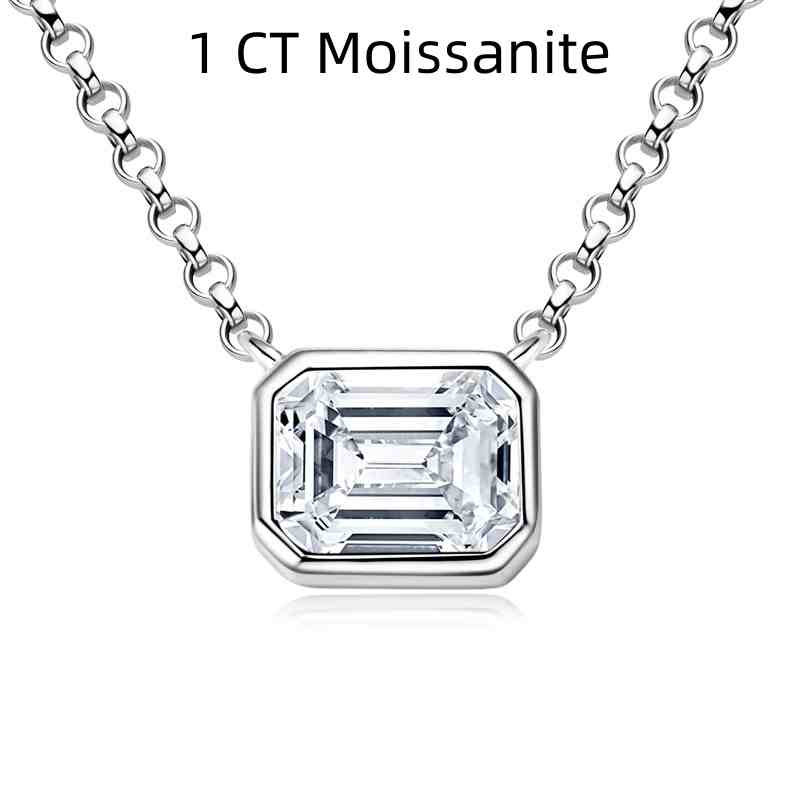 Jzora handmade 1ct emerald cut classy Moissanite sterling silver necklace