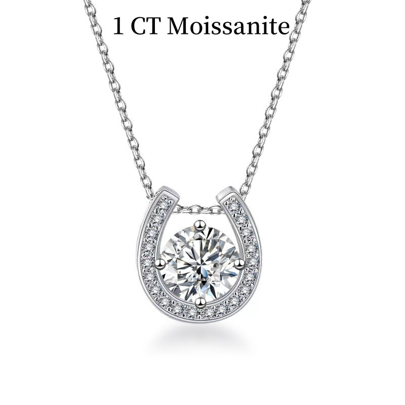 Jzora handmade 1ct round cut horseshoe moissanite sterling silver necklace