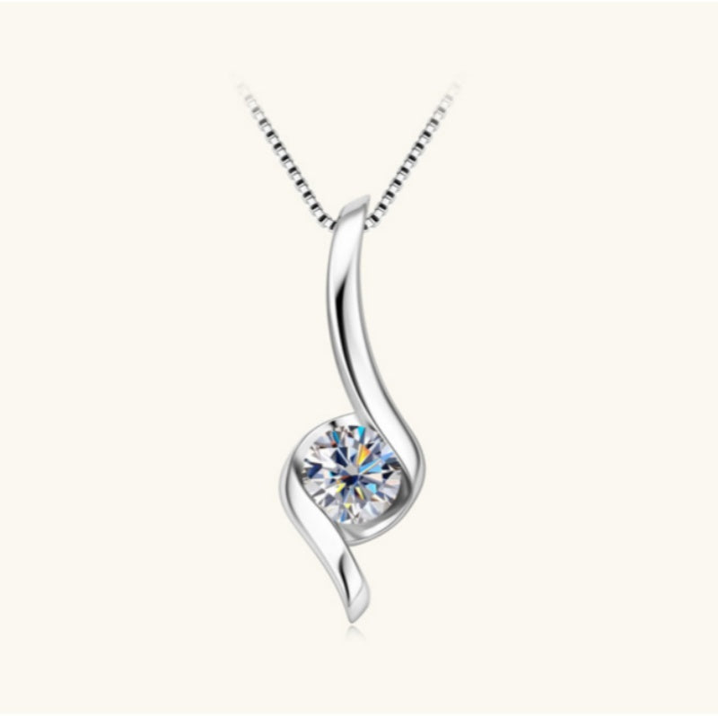 Jzora handmade 1ct round cut Moissanite diamond sterling silver necklace