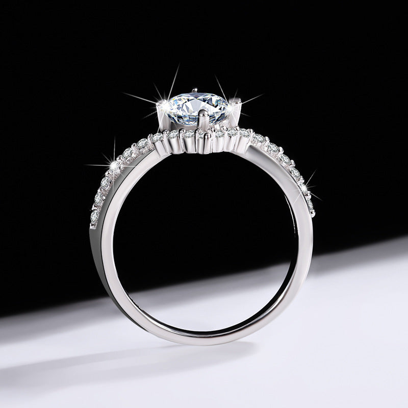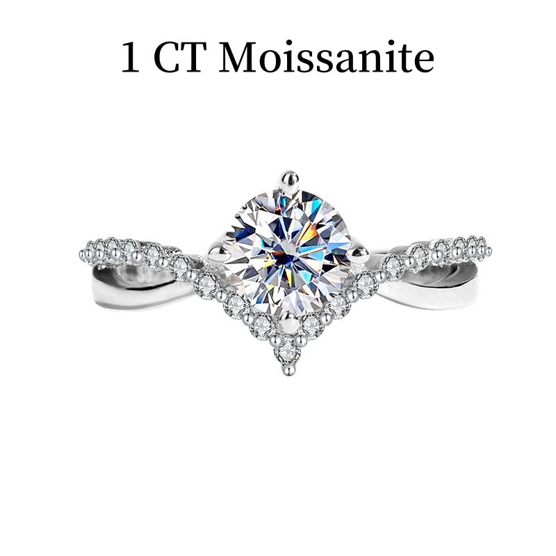 Jzora handmade 1ct round cut moissanite sterling silver ring