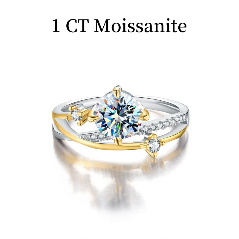 Jzora handmade 1ct round cut two-tone moissanite sterling silver ring