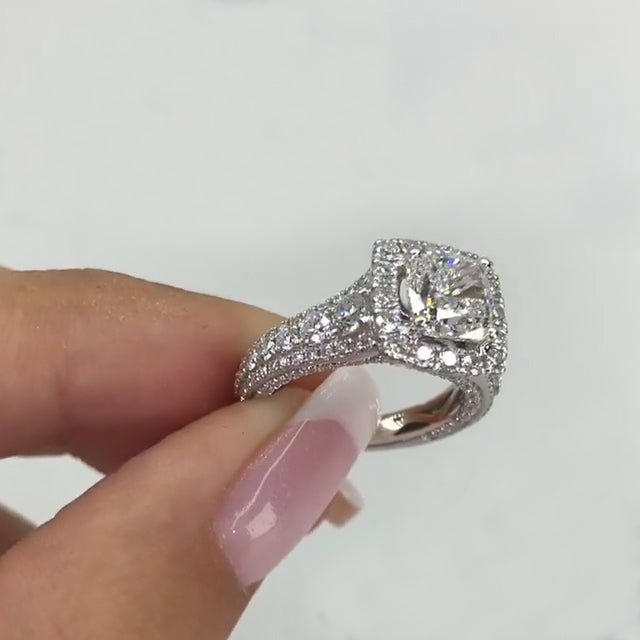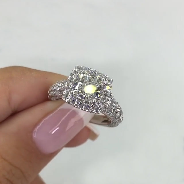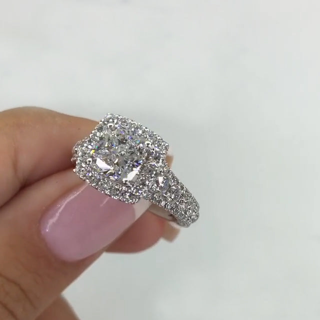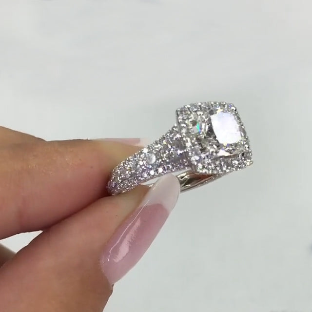 Jzora handmade 2ct cushion cut halo sterling silver engagement ring