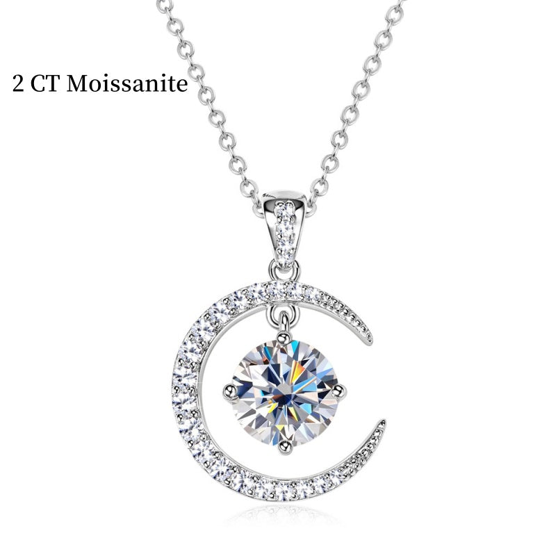 Jzora handmade 2ct round cut crescent moissanite sterling silver necklace