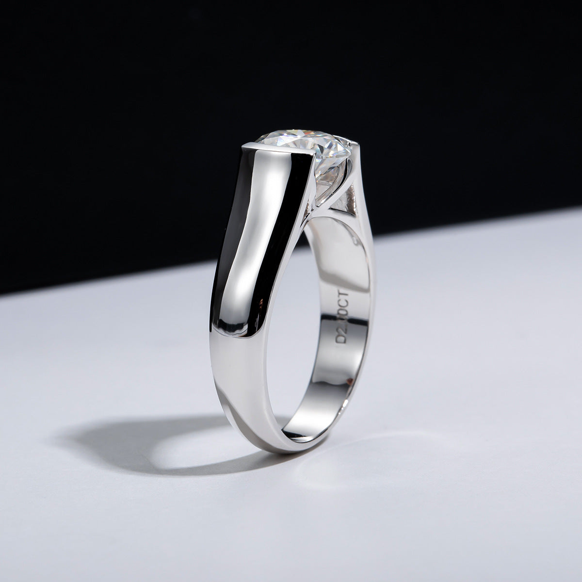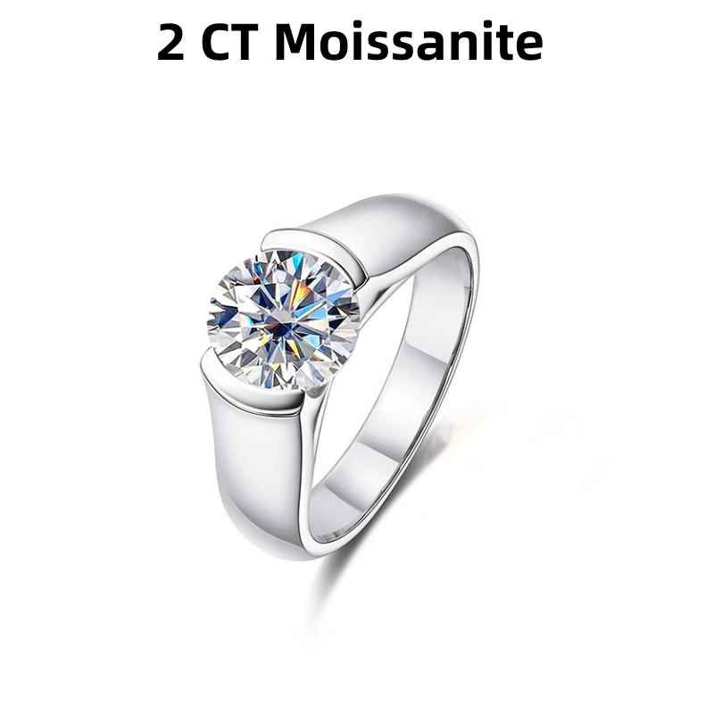 Jzora handmade 2ct round cut Moissanite D-Color sterling silver engagement ring