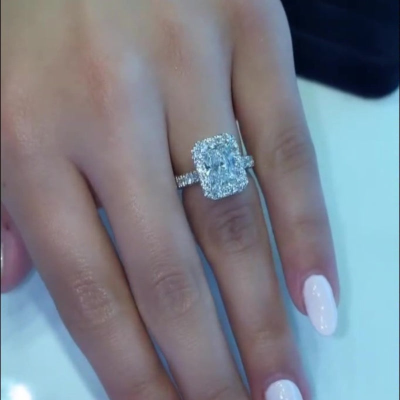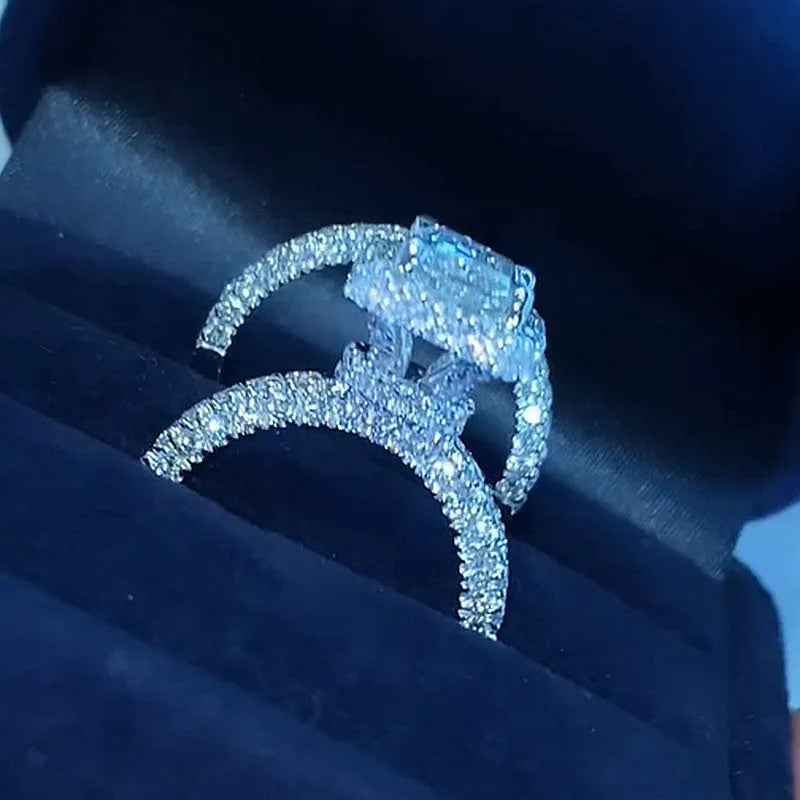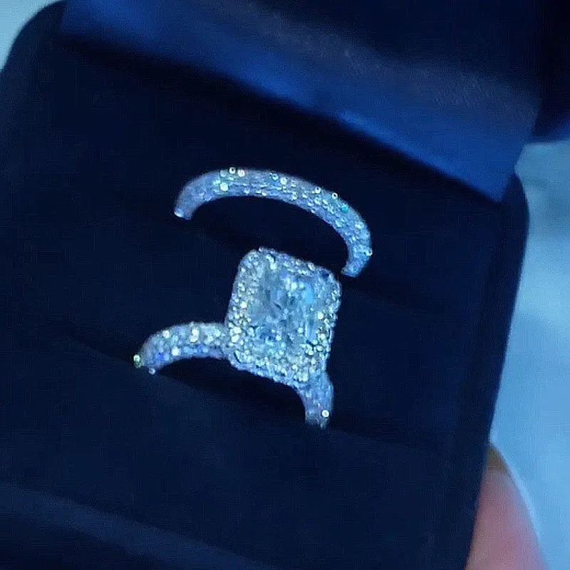 Jzora handmade 3.5ct radiant cut halo vintage sterling silver wedding ring set