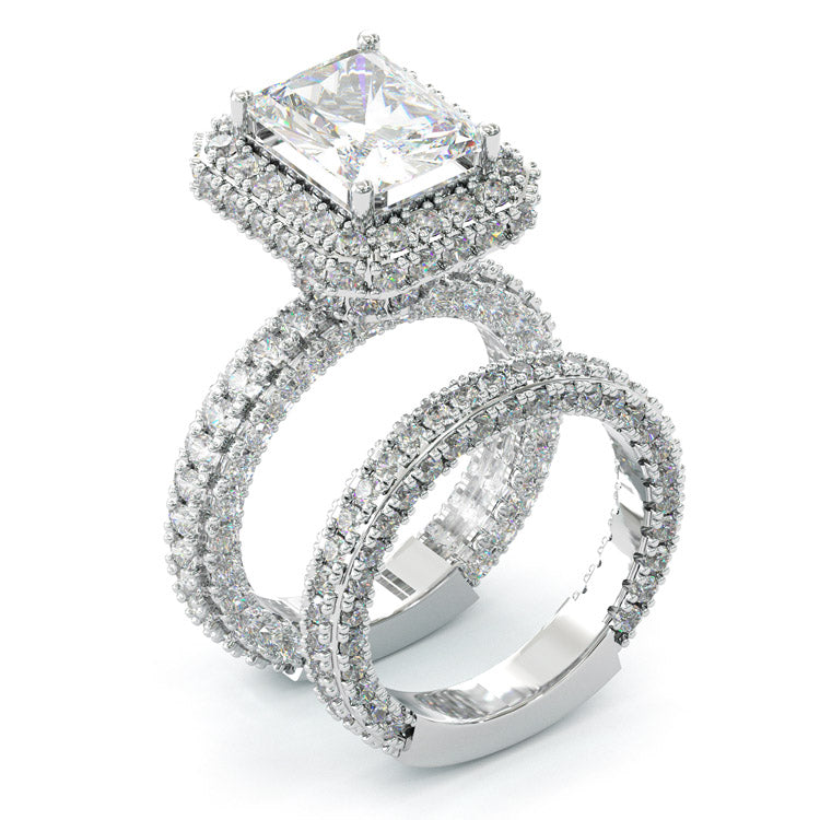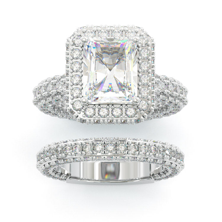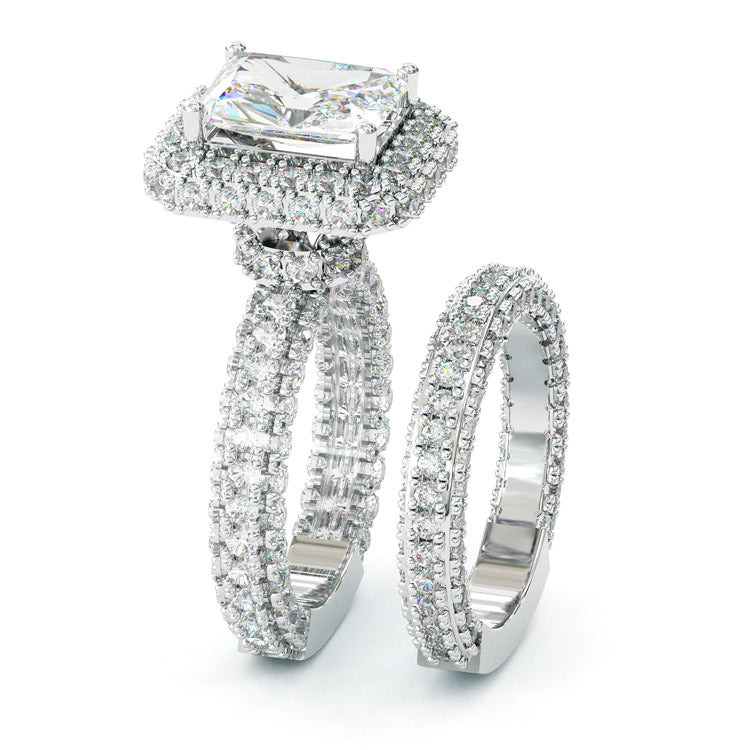 Jzora handmade 3.5ct radiant cut halo vintage sterling silver wedding ring set