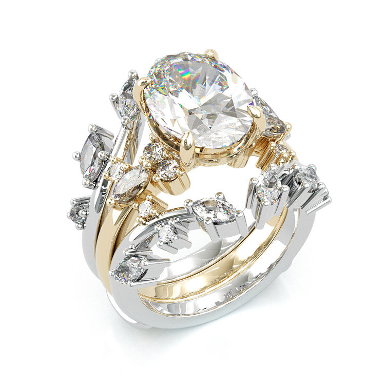 Jzora handmade 3ct oval cut classic sterling silver 2pcs bridal ring set