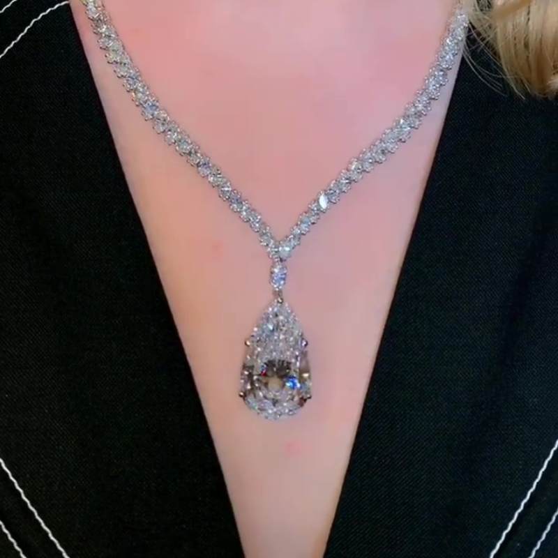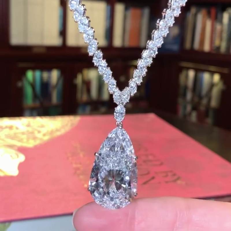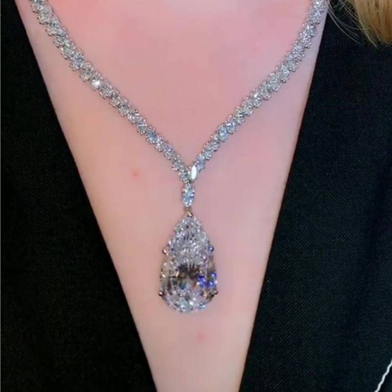 Jzora handmade 38 ct pear cut sterling silver diamond necklace