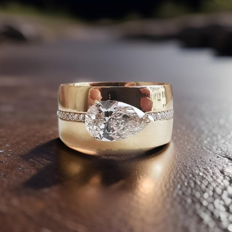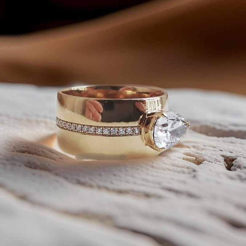 Design Style: Modern elegance – combines the boldness of a wide band with the refinement of pavé sparkle.