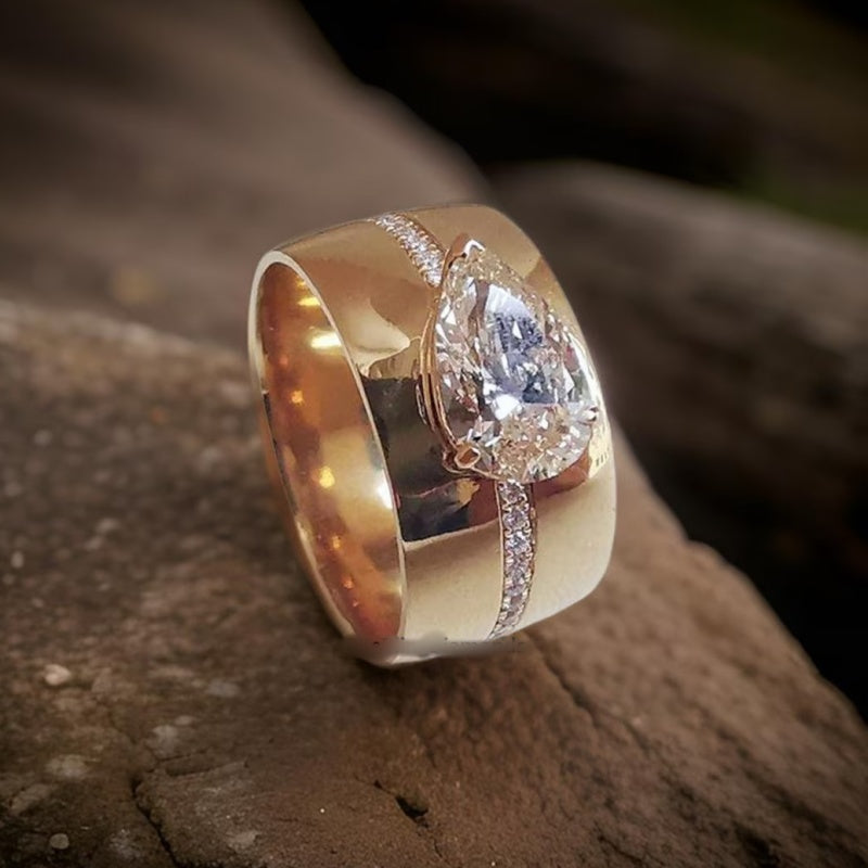 Jzora handmade 3ct pear cut pave setting modern elegance sterling silver moissanite bridal wide band ring