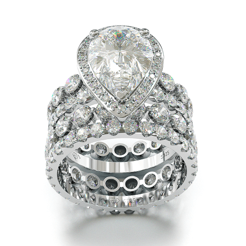 Jzora handmade 3ct pear cut vintage sterling silver 4pcs wedding bridal ring set