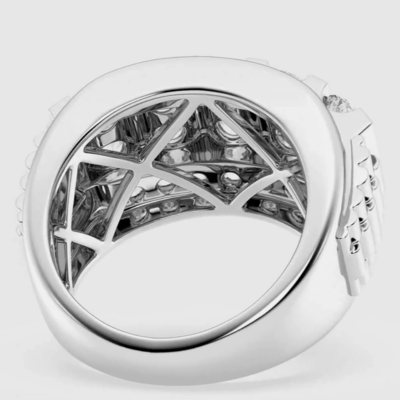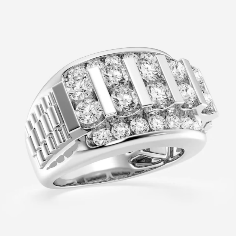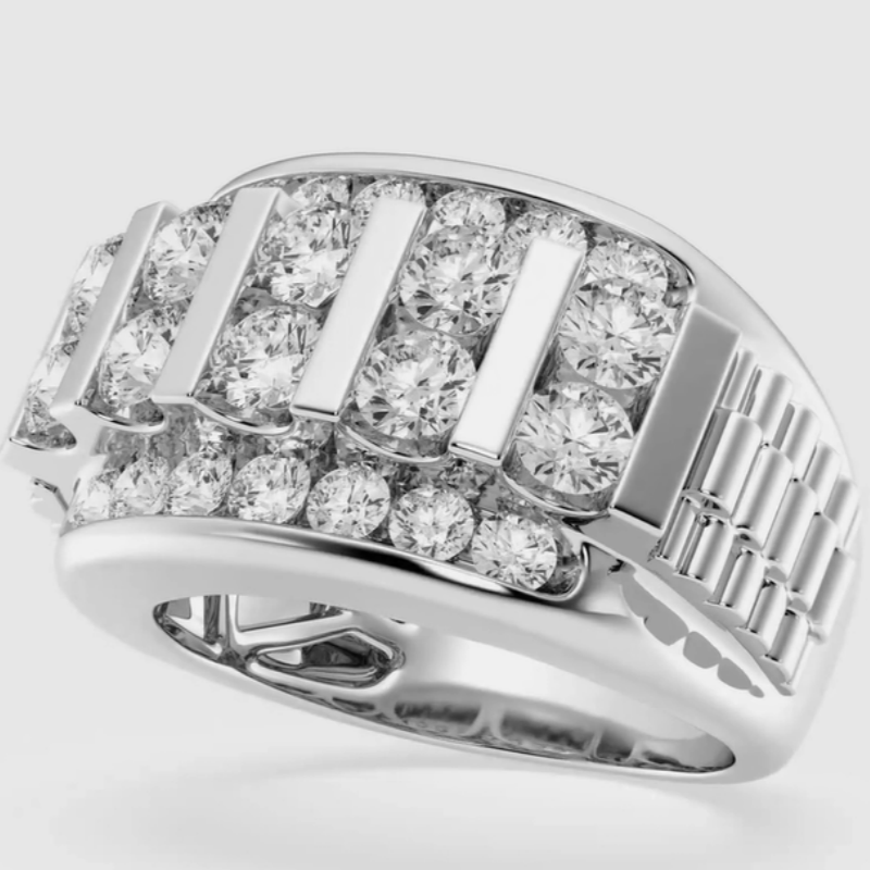 Bold Masculine Aesthetic: Wide band with a structured, architectural style.