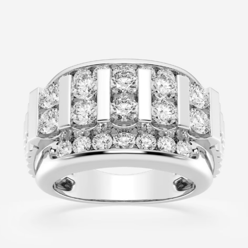 Jzora handmade 3ct round cut floating bar men's wedding band ring