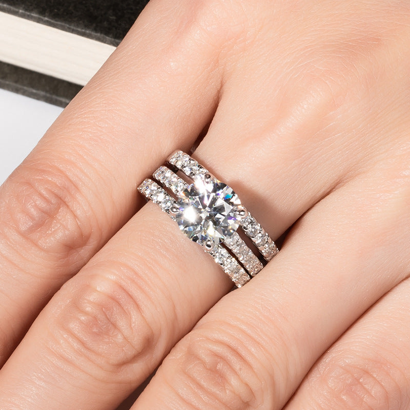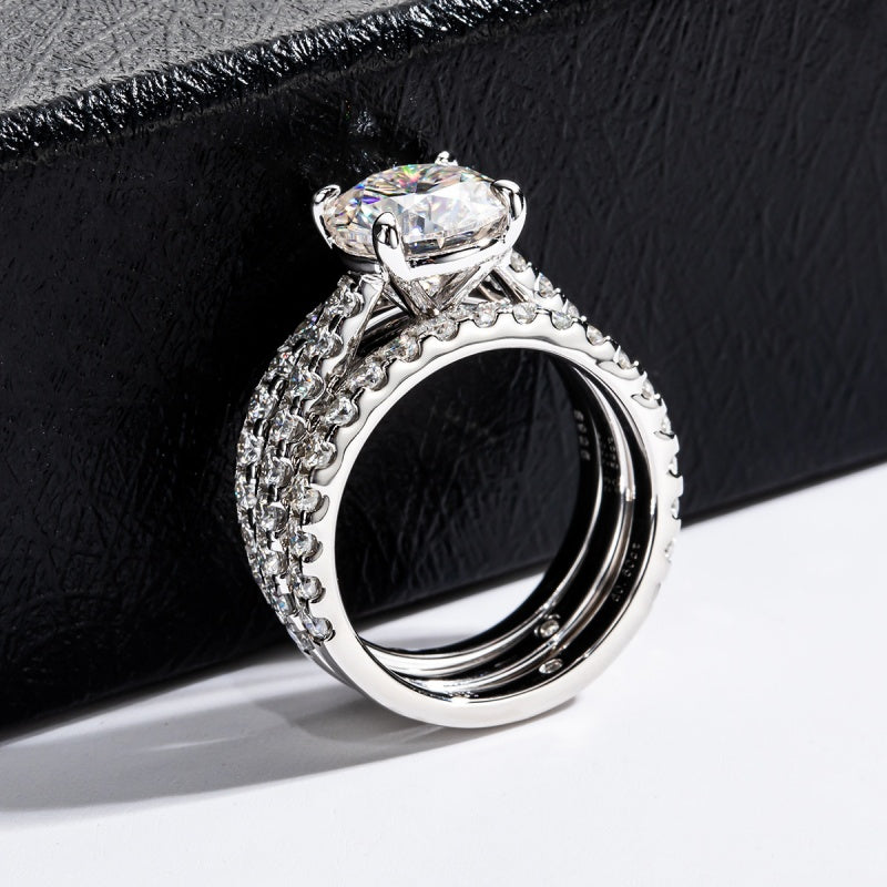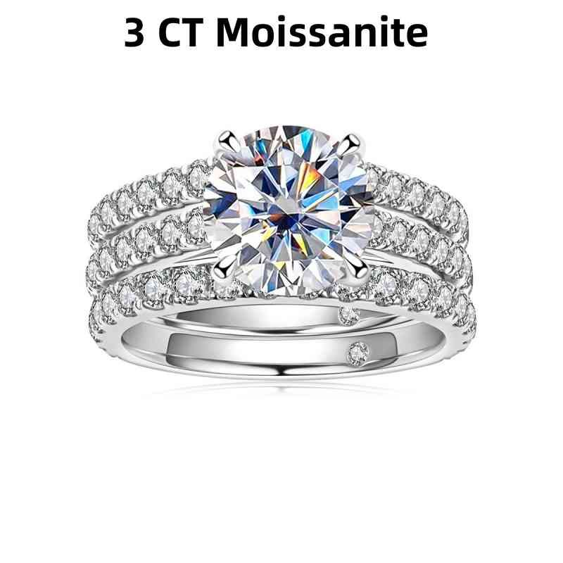 Jzora handmade 3ct round cut Moissanite D-Color sterling silver wedding ring set
