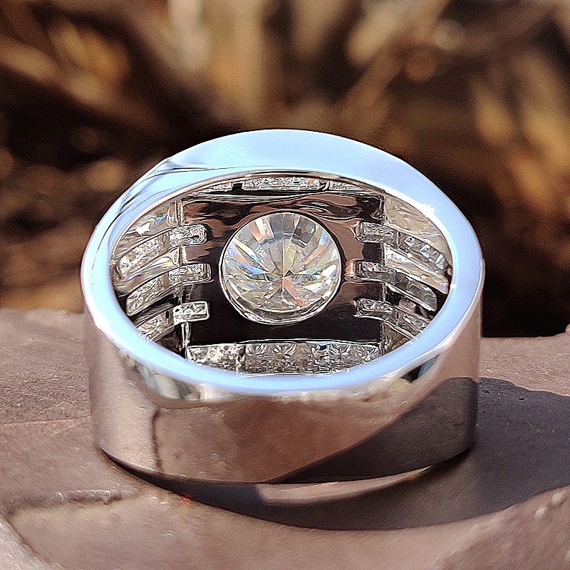 Jzora Handmade 4.77ct Round Brilliant Cut Trio Channel Set Unique Men's Engagement Ring