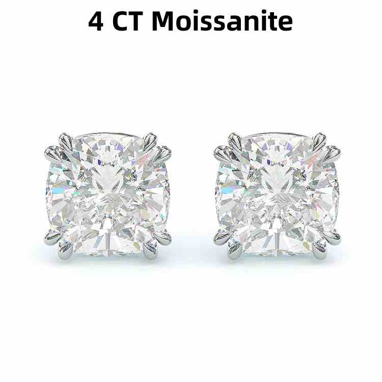 Jzora handmade 4ct cushion cut moissanite vintage sterling silver earrings