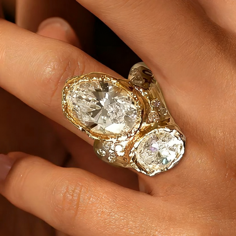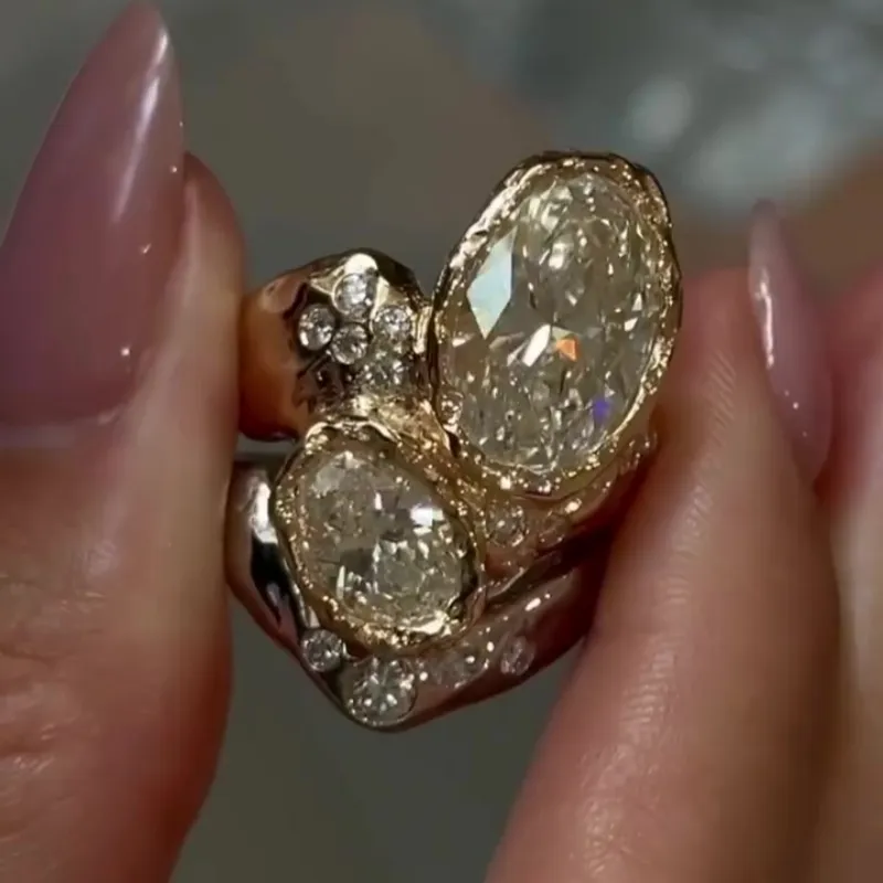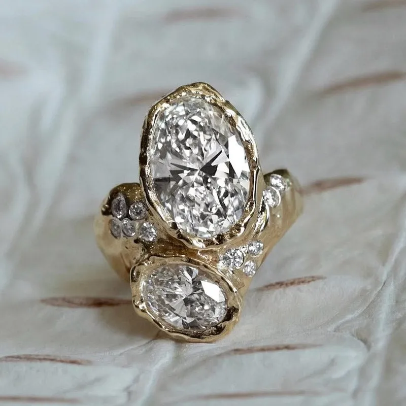 Jzora handmade 5ct oval cut irregular unisex sterling silver ring