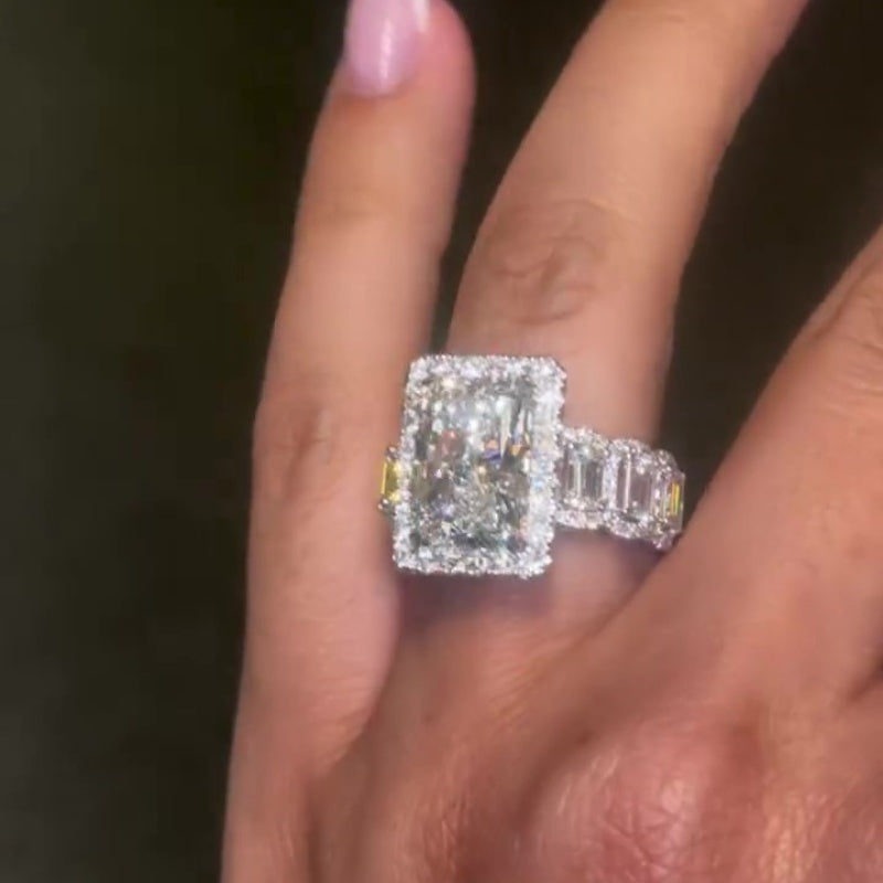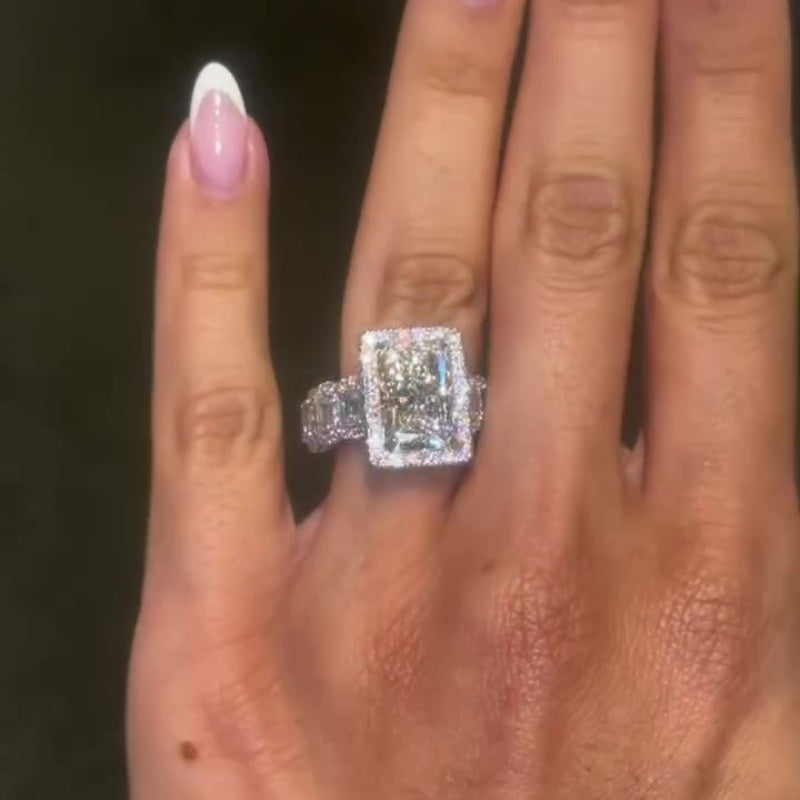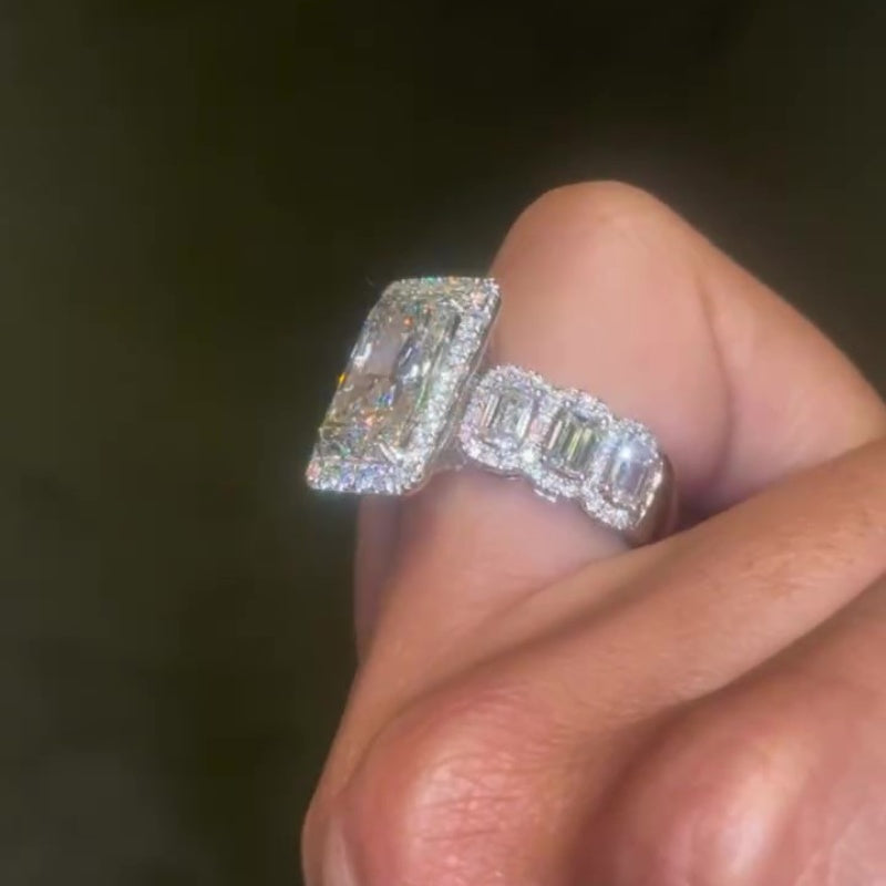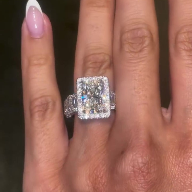 Jzora handmade 5ct radiant cut halo design sterling silver ring