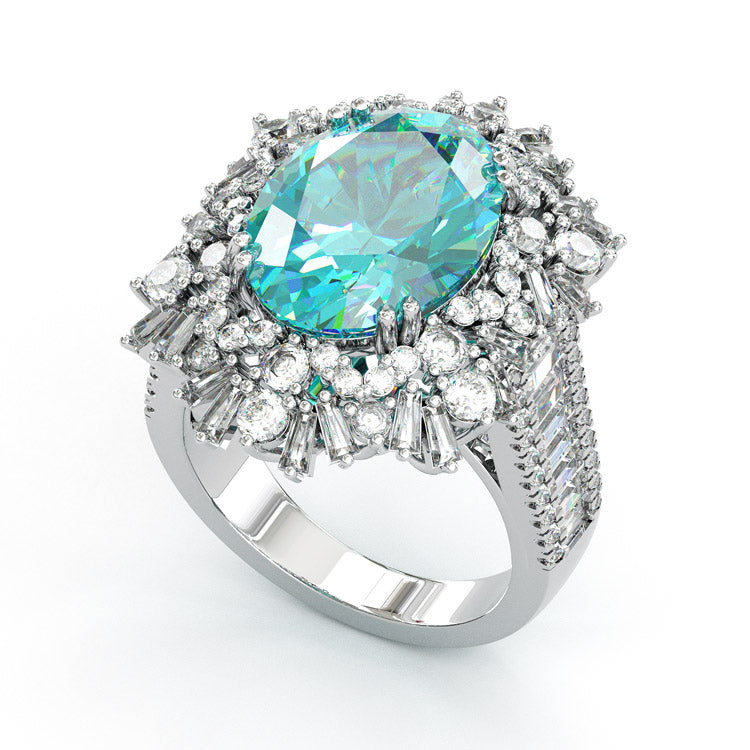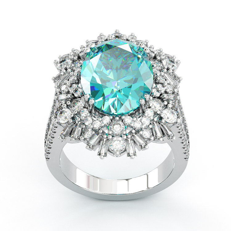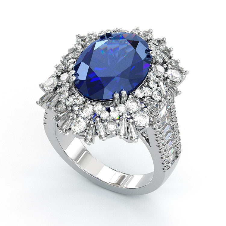 Jzora handmade 6.75ct sapphire oval cut sterling silver engagement ring