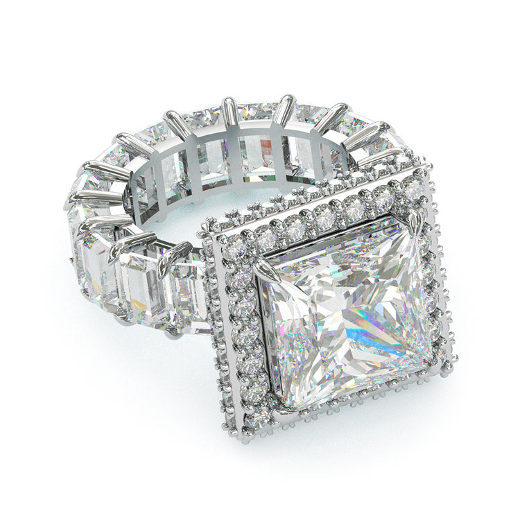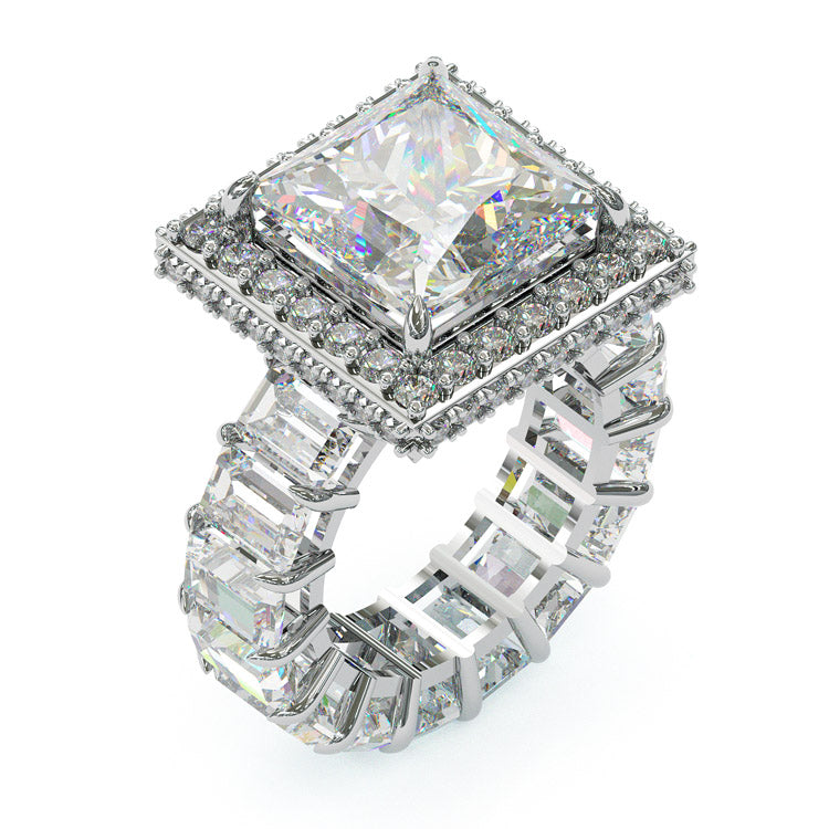 Jzora handmade 6ct princess cut halo sterling silver ring